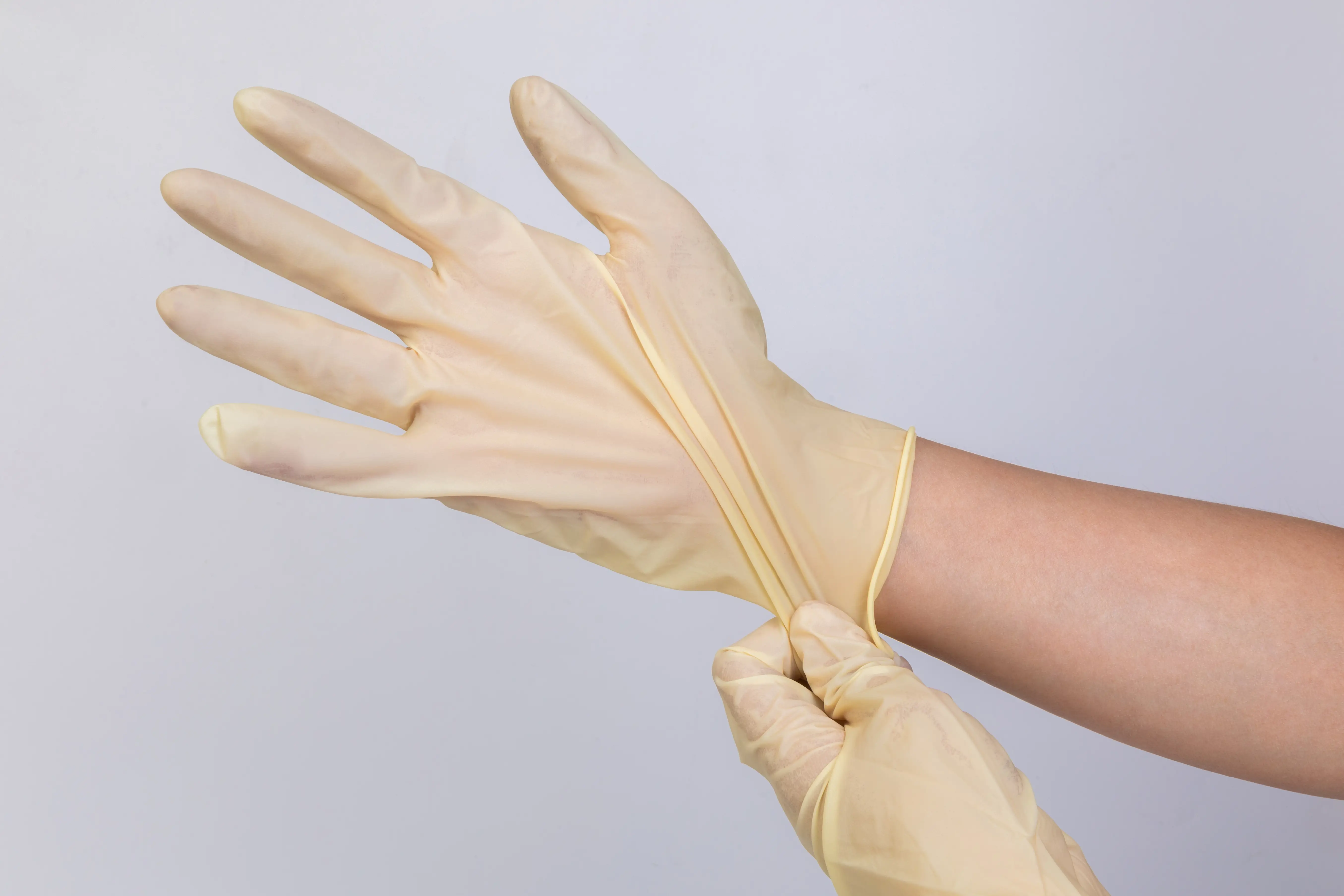 克重:5.8g / 6.3g 顏色:乳黃色 材質:天然乳膠 包裝方式:50雙/包,10包/箱 產品尺寸:S、M、L、XL 產地:印尼/馬來西亞 產品特色: ◆高彈性與靈活性 ◆基本防護力佳、防水防塵,阻隔性佳 ◆天然乳膠材質,貼合手感極佳 ◆適用於食品處理、清潔服務、實驗室、美容美髮等行業。